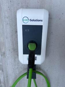 Im Carport befindet sich außerdem eine E-Ladestation, an der du dein Elektrofahrzeug bequem aufladen kannst.