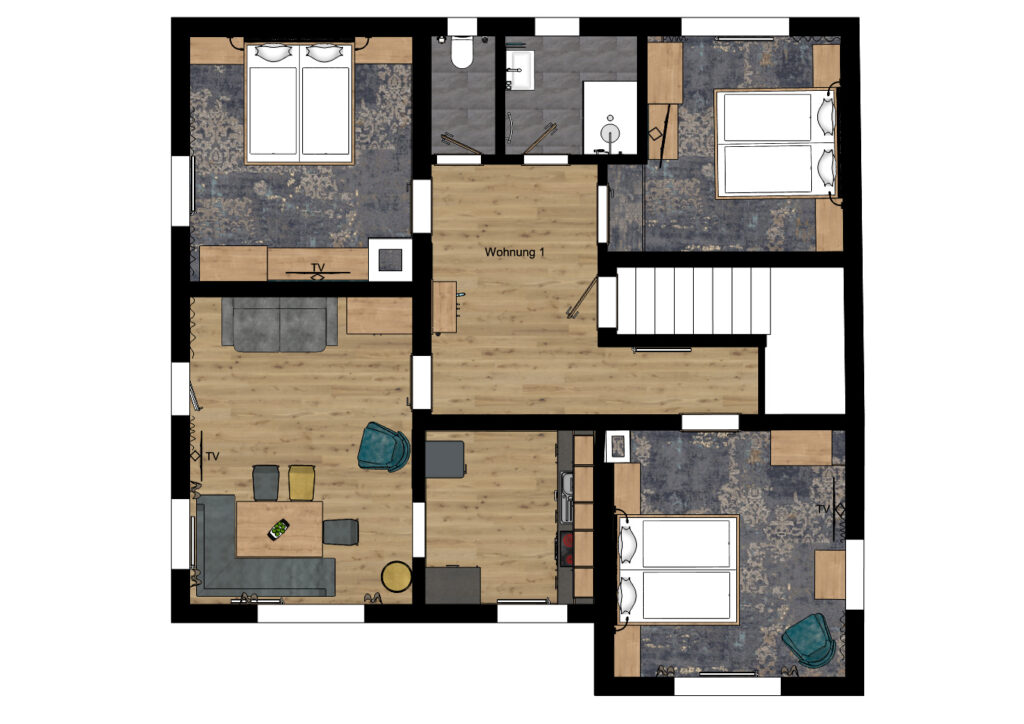 Mit 3 Schlafzimmern und hochwertigen Betten bietet die Wohnung ausreichend Platz für 3–8 Personen. Hier erwarten dich ruhige Nächte, viel Komfort und erholsamer Schlaf nach einem erlebnisreichen Tag in den Bergen.